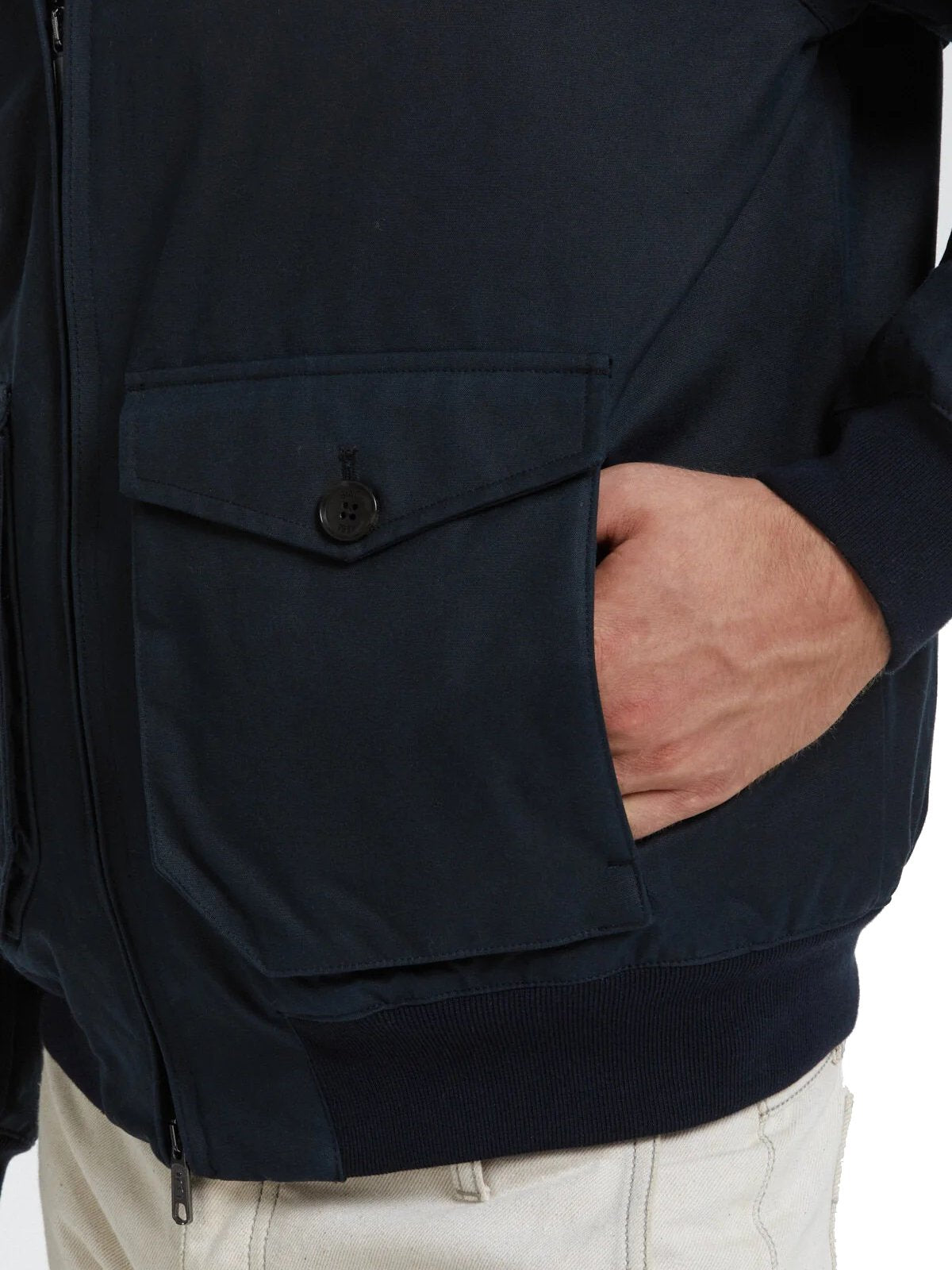 Preparatevi ad affrontare il tempo umido e ventoso con il G9 Waxed Pocket, realizzato in cotone cerato British Millerain, il produttore originale di questo tessuto dal 1880. La vestibilità Authentic Fit lo rende più ampio e comodo rispetto al Regular Fit del nostro classico G9 Harrington. Questo modello reinterpreta una delle caratteristiche tradizionali del G9: al posto delle tipiche tasche laterali oblique, abbiamo inserito due tasche più grandi al centro della giacca. A parte questa novità, rimangono inalterati gli altri dettagli tipici del G9, come l'iconico spallone con motivo ad ombrello e il classico colletto a due bottoni. Consigliamo di indossarlo con il nostro Bucket Hat cerato per ottenere la massima protezione dalla pioggia!
