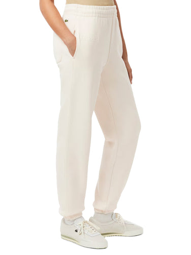Pantaloni Donna Lacoste - Pantaloni In Tessuto Felpato Con Logo Groffato - Avorio